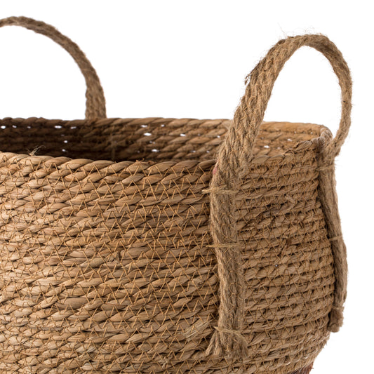 Decorative Round Storage Basket Set of 3 with Woven Handles