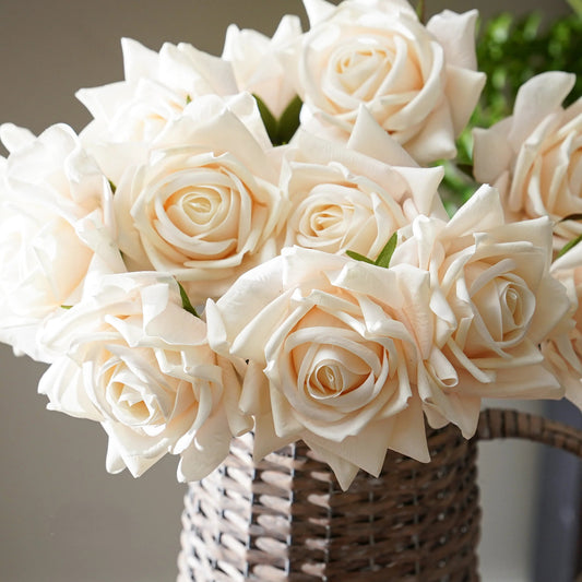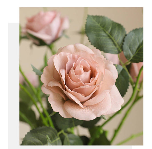 Real Touch Dusty Beige Rose Stem with 6 Blooms - 29"