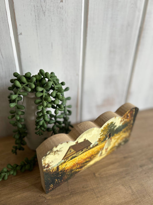 Sunset Bunnies and Girl Walk Wooden Sign - 5.5"
