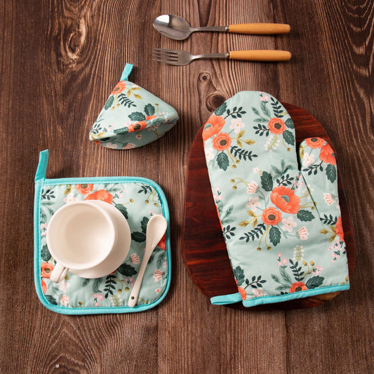 Set of 3 | Oven Glove, Insulation Mat, and Pot Cap Hat Anti Scalding Set