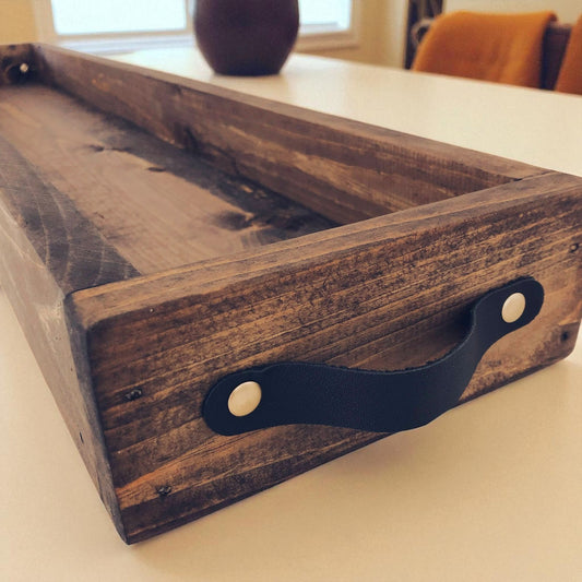 Wooden Serving Tray with Leather Handles