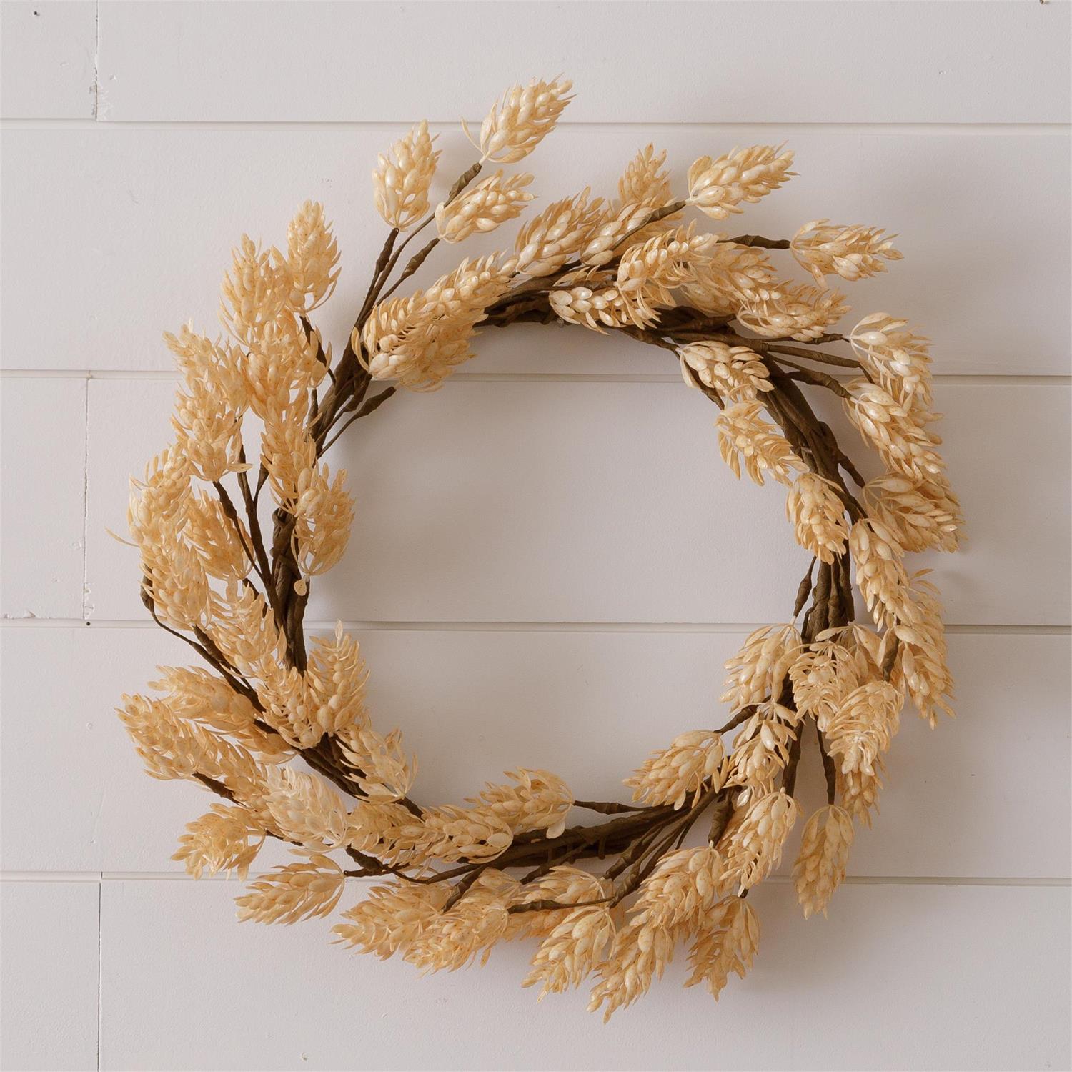 This Cream Hops Wreath measures 16 inches in outer diameter with a 9-inch inner opening, making it a perfect size to enhance your door or wall. Its soft cream color and natural hops texture add a cozy, rustic touch to your home decor, suitable for any season or special occasion.