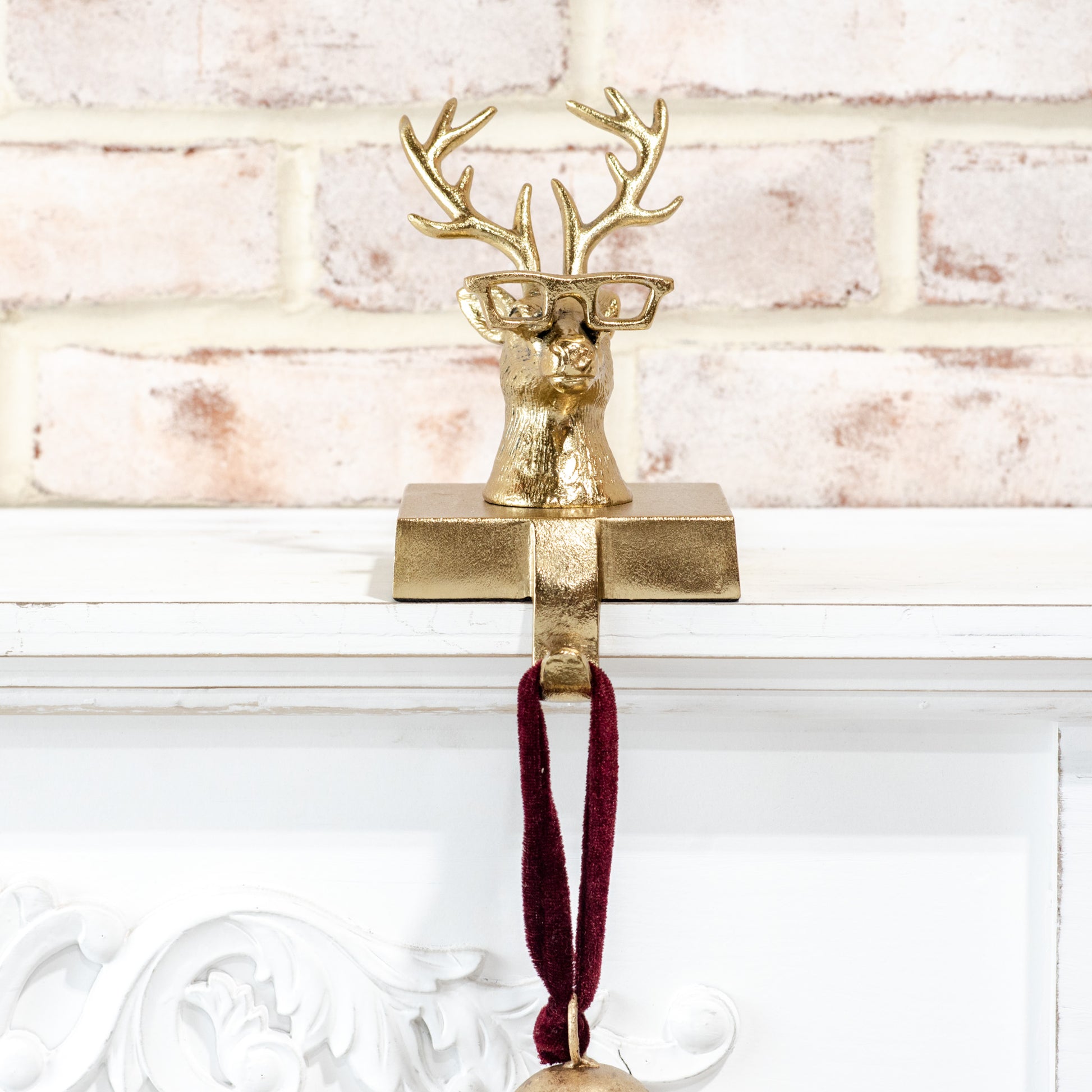 When your stockings need a stylish place to hang, let this quirky Gold Eyeglasses Reindeer Stocking Holder do the job! Made of durable gold metal and shaped like a pair of glasses-wearing reindeer, it adds a playful touch to your holiday decor.