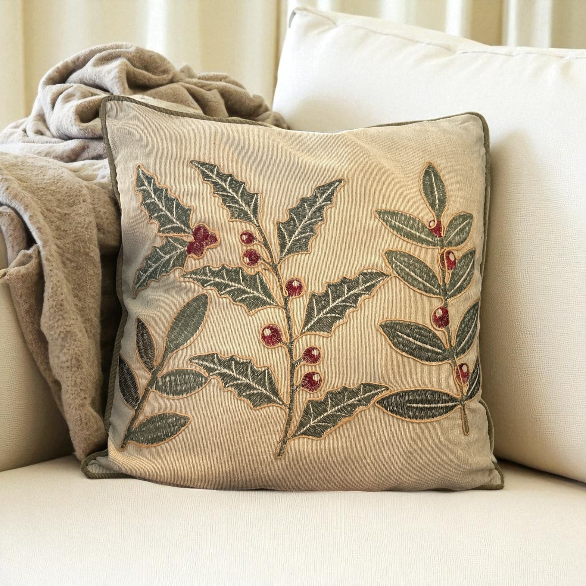 Add a festive touch to your holiday decor with the Green Holly Pillow. Measuring 18"x18", this pillow features a classic holly design on the front and a rich green backside, perfect for complementing any Christmas setting. Its soft texture offers cozy comfort while enhancing your seasonal ambiance. Ideal for couches, chairs, or beds, this pillow brings warmth and holiday spirit to your home.