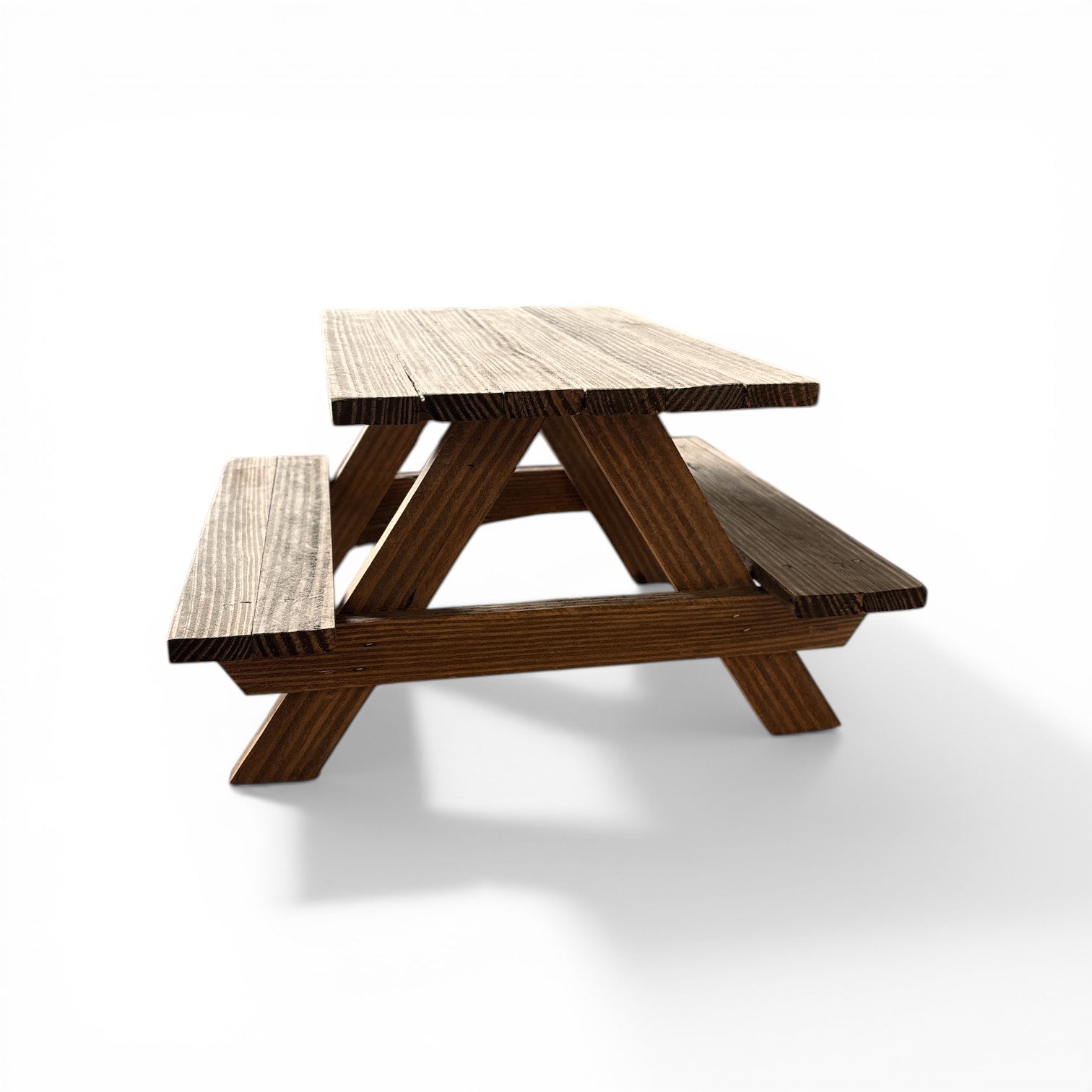 Charming miniature picnic table crafted from natural wood lath. Perfect for seasonal displays, shelf styling, or garden décor. Its compact 15"x9"x14" size makes it ideal for decorative placement. Rustic appeal adds warmth to display. A delightful accent piece for home decorators and gift-givers alike.