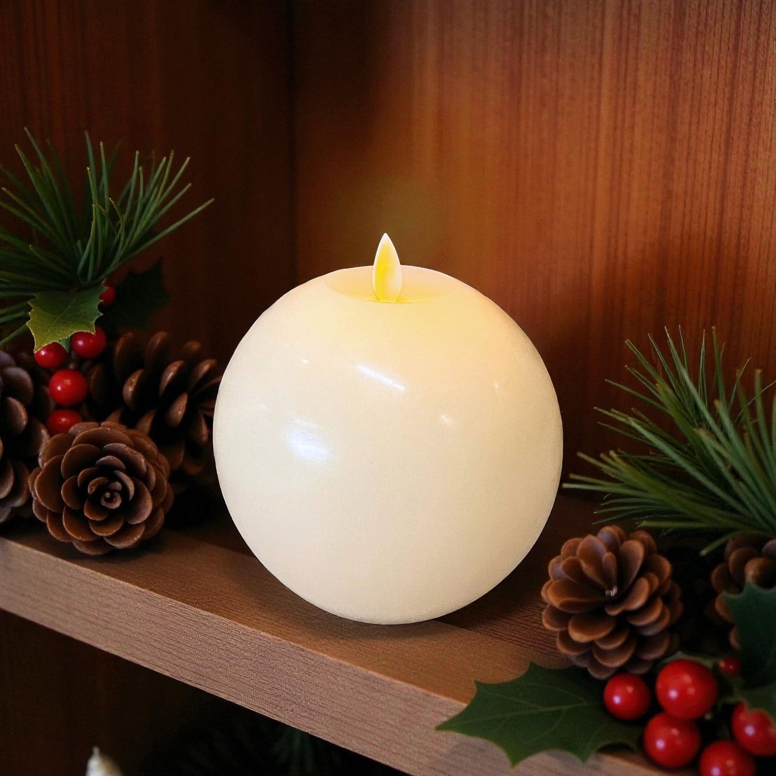 Cream Ball Moving Flame Flameless Candle with Timer - 4.5"