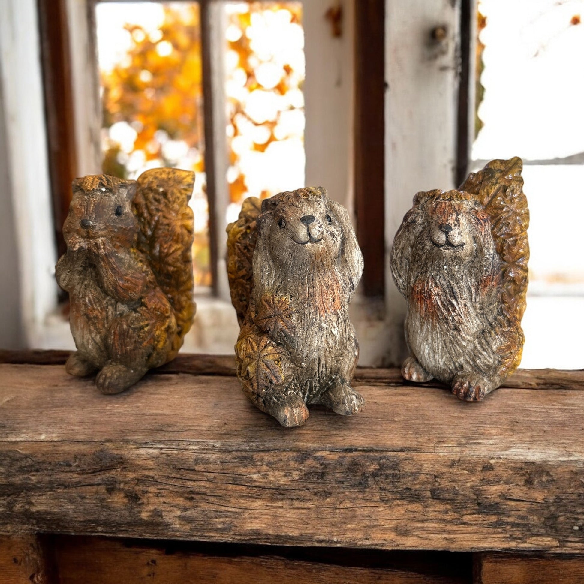 Bring a touch of autumn charm to your space with this set of three adorable 2.75" squirrel babies. Perfect for seasonal decorating, these cute figurines add warmth and whimsy to any shelf, mantel, or tabletop display. Their detailed design captures the playful spirit of fall, making them a delightful accent for your home decor.