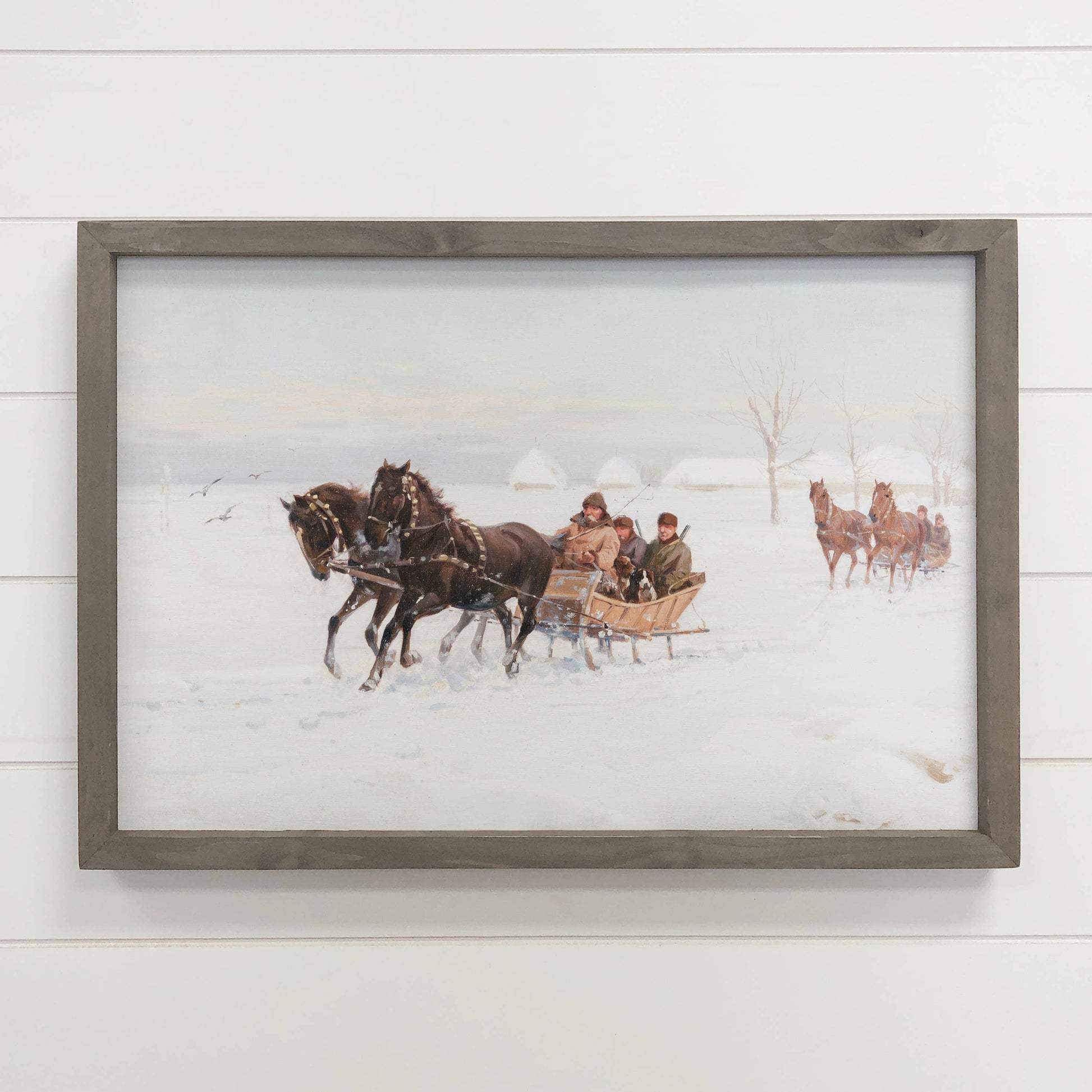 Vintage Snowy Sleigh Rides Framed Canvas - 20"x30"