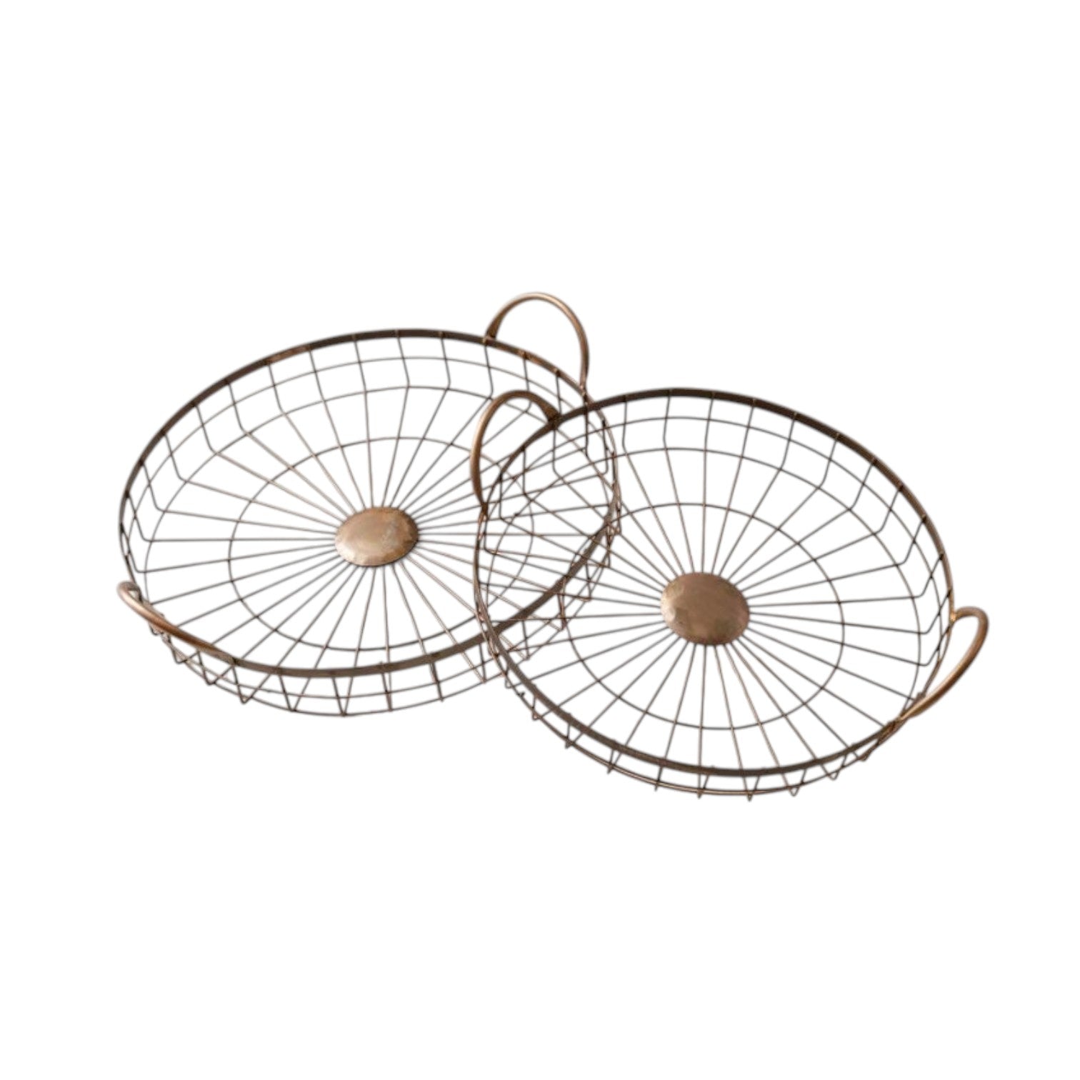Add a festive touch to your holiday decor with these Weathered Wire Basket Trays. Available in two sizes, 15.75" and 14" in diameter, they feature a warm copper finish and are crafted from durable iron. Perfect for showcasing seasonal accents like ornaments, pinecones, or cozy blankets, these baskets combine rustic charm with practical storage for a welcoming Christmas atmosphere.