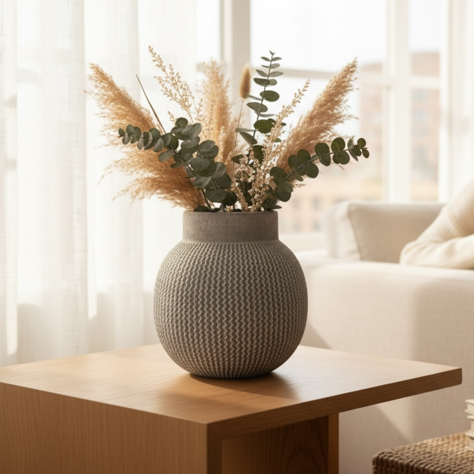 White Ball-Shaped Planter with Zigzags, Large 10"