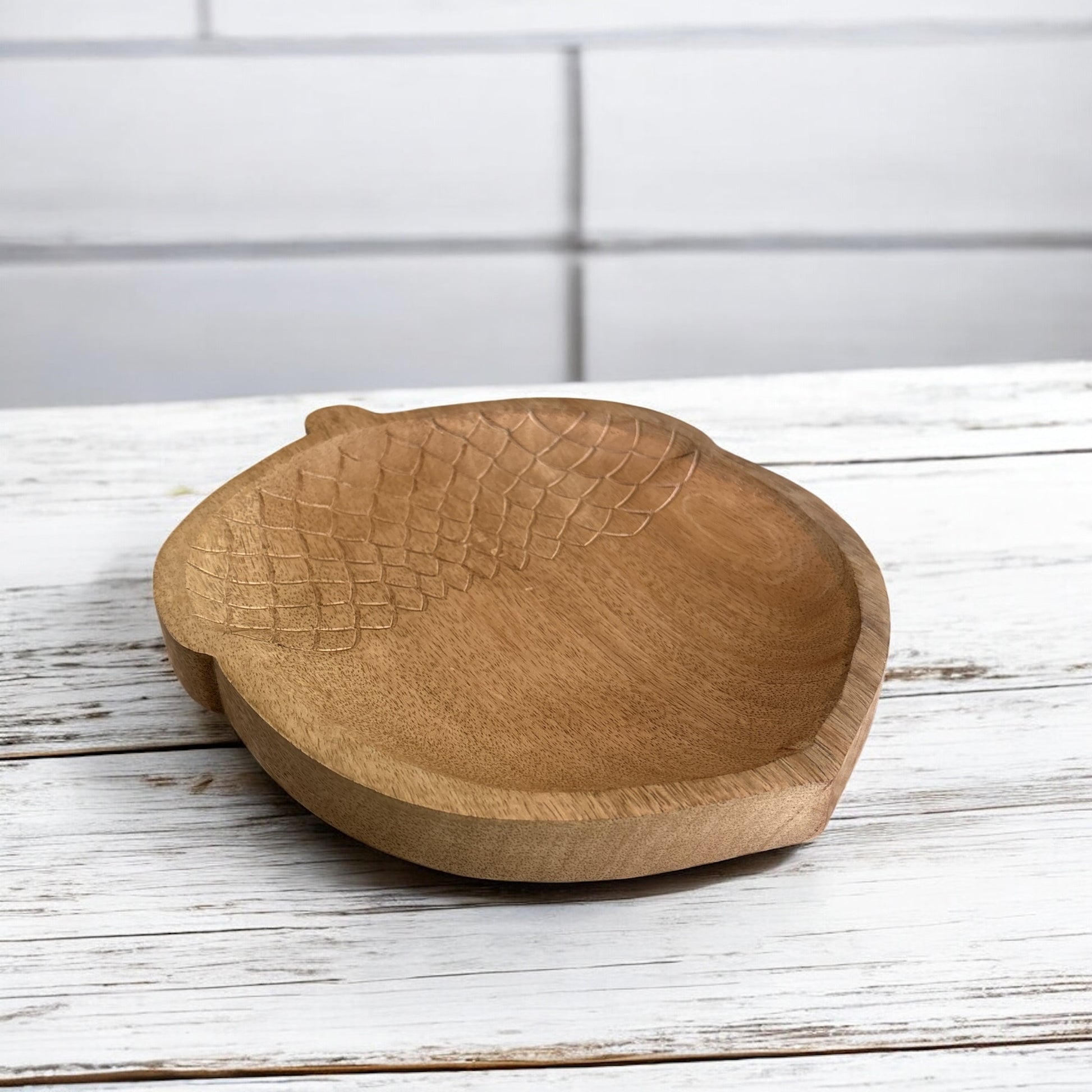 This 12-inch Wooden Acorn Platter combines natural charm with functional design, perfect for serving appetizers or displaying seasonal decor. Crafted from quality wood, its acorn-inspired shape adds a warm, rustic touch to any table setting or home display. Ideal for autumn gatherings or everyday use, it brings a cozy, decorative element to your space.